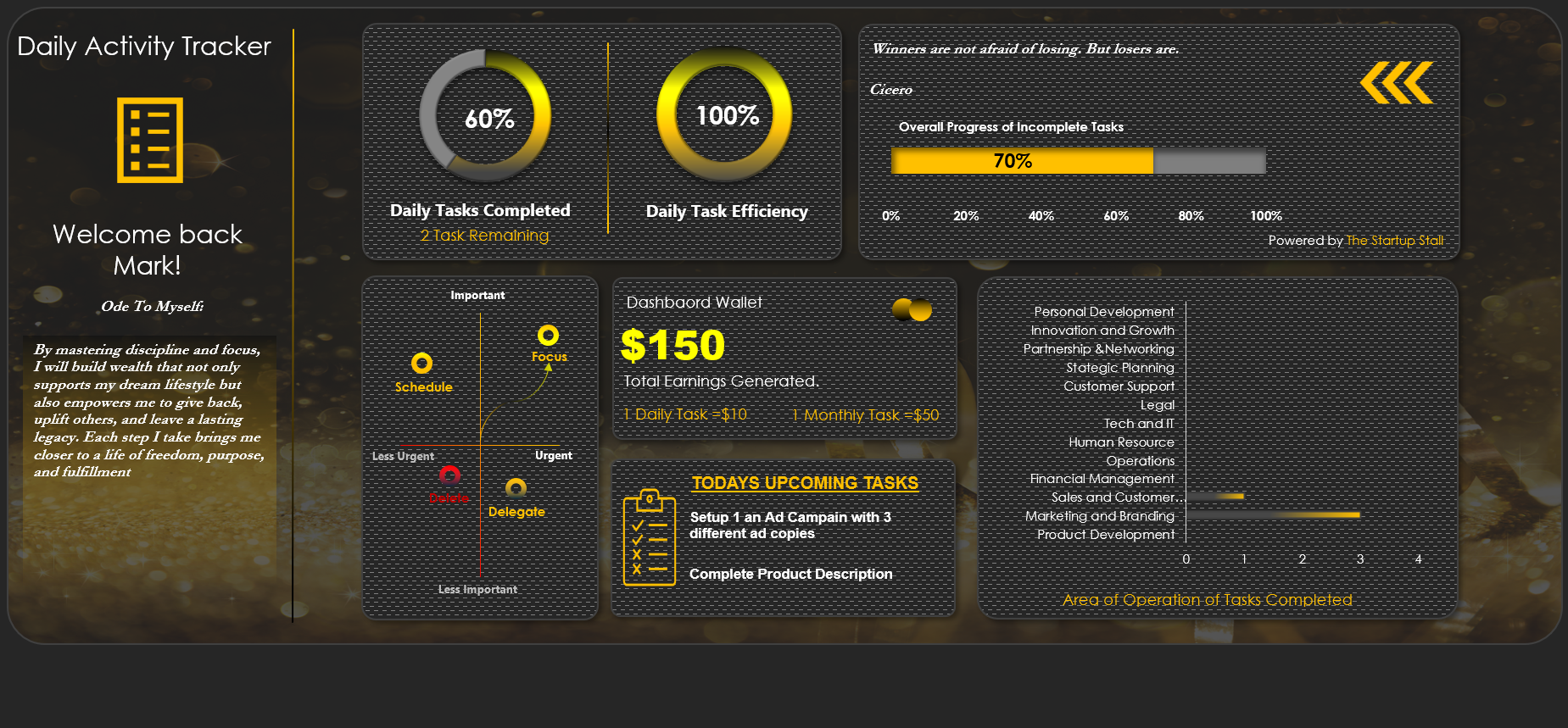 - Pay yourself every time you complete a task to motivate you to continue completing tasks, grow your dashboard wallet, and redeem rewards.